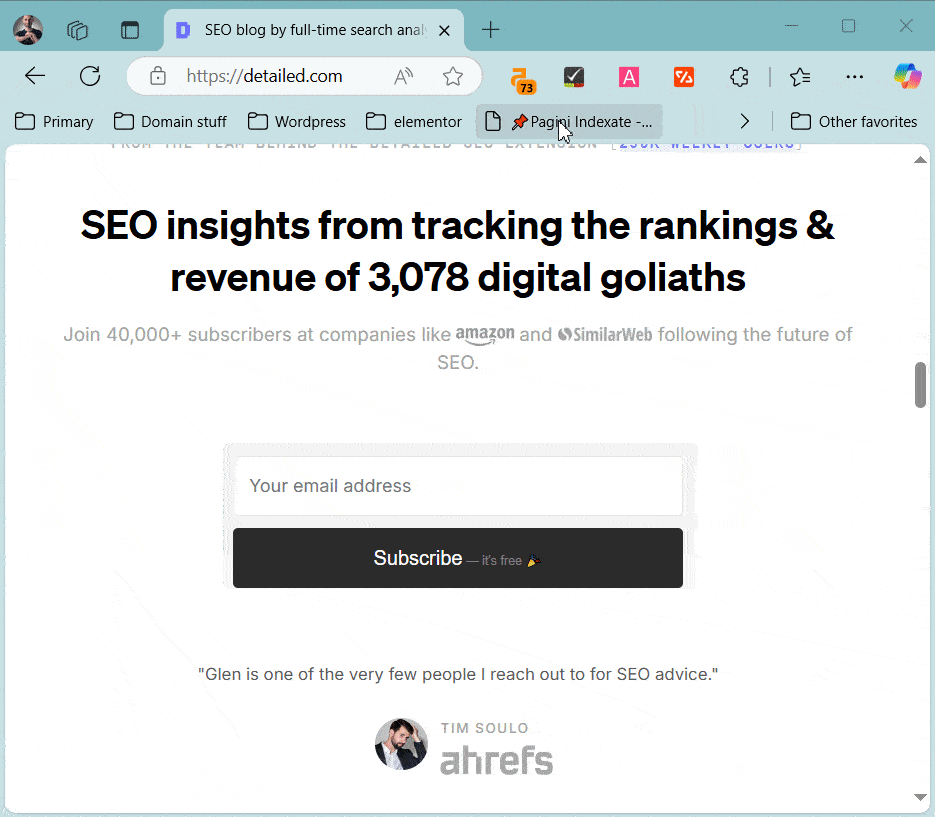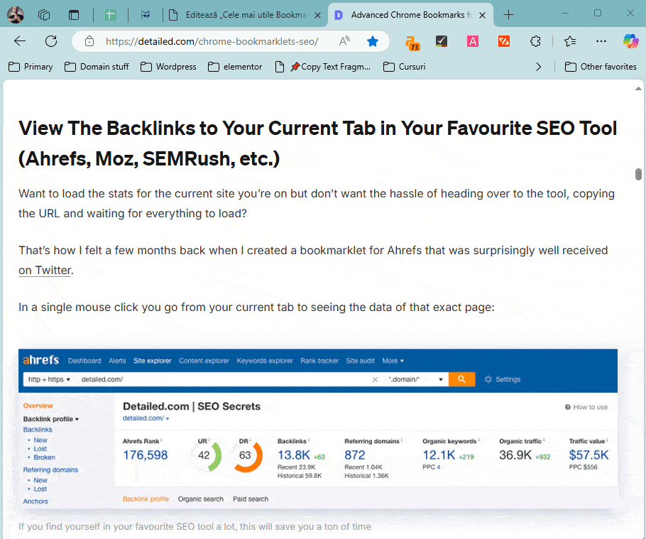 If you use all of the SEO tools above, I’ve created a bookmarklet to open them all at once – with a single click you’ll analyze the active page in 4 different SEO tools – ahrefs, SEMRush, archive.org, and PageSpeed Insights.