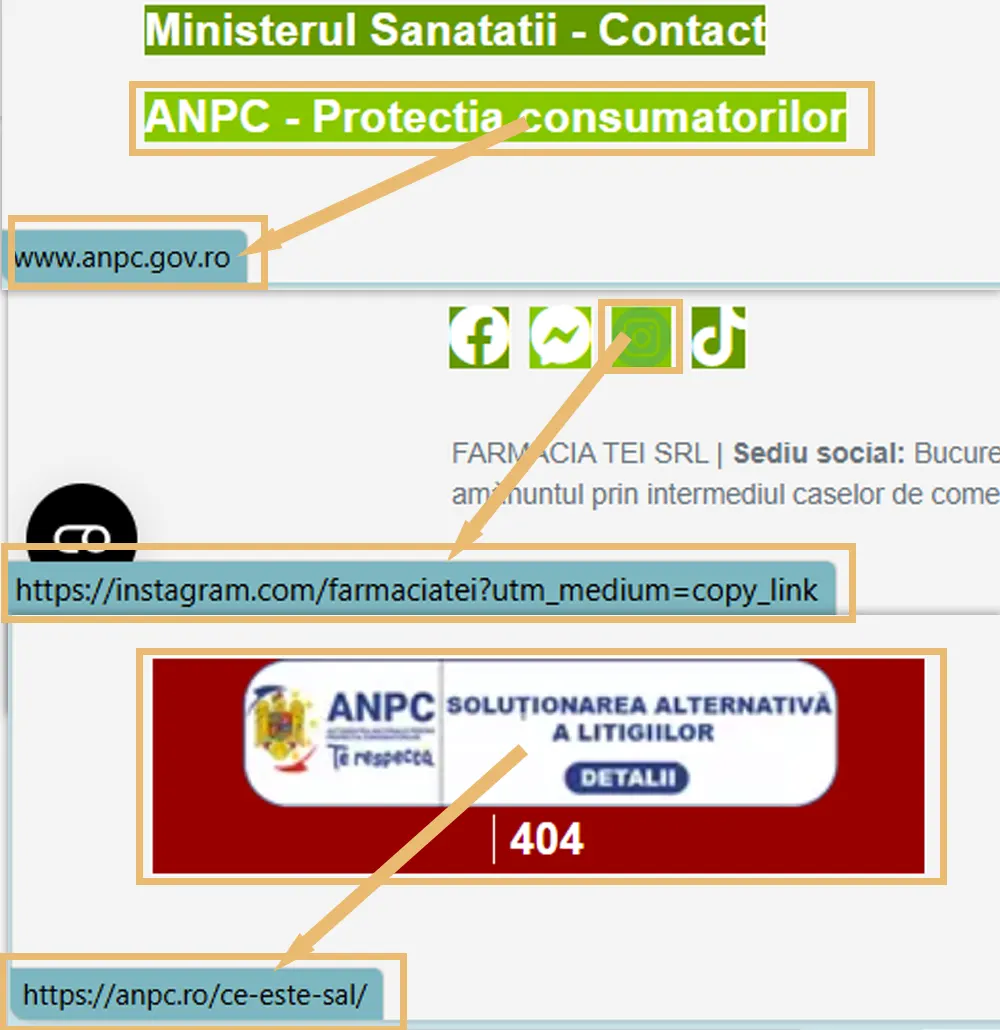 O problema pe mai multe pagini de produs – link-ul catre site-ul anm.ro are codul HTML gresit.