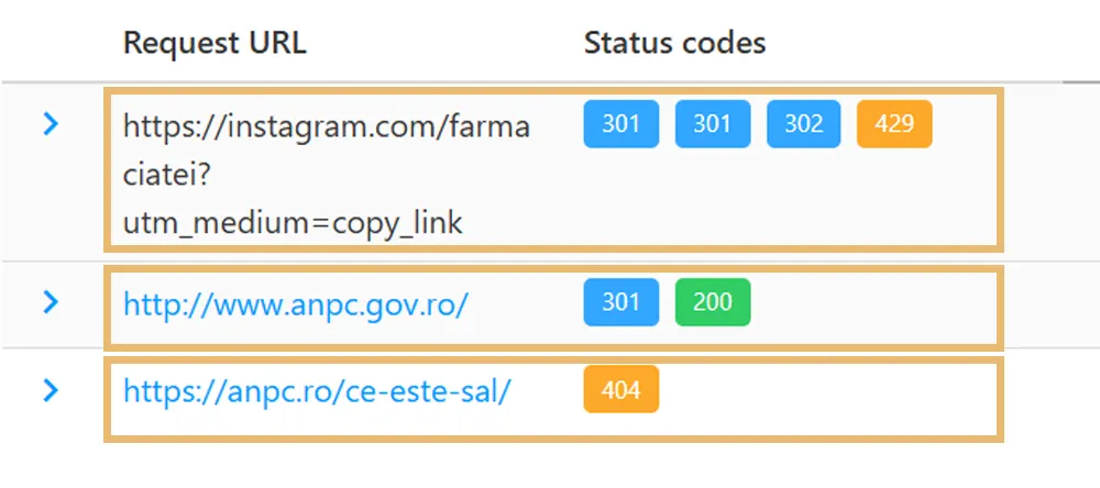 - Pont SEO: Pentru a vedea detaliile 301 redirect si 404 mai multor link-uri foloseste site-ul httpstatus.io.